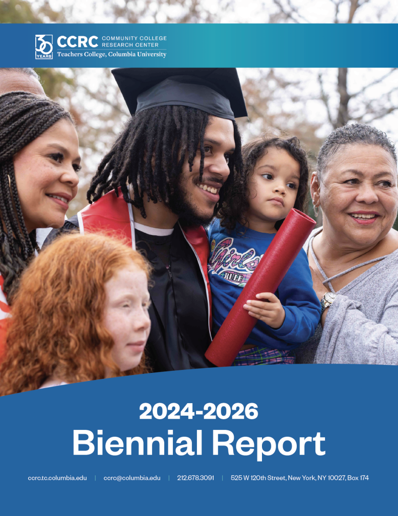 CCRC’s 2024–2026 Biennial Report highlights major findings from the center’s recent research, including new measures of community college progress and emerging areas of study. It showcases how CCRC’s work is informing policy and practice nationwide and reflects on the center’s 30-year history. The report also includes research snapshots, outreach statistics, and a financial overview.