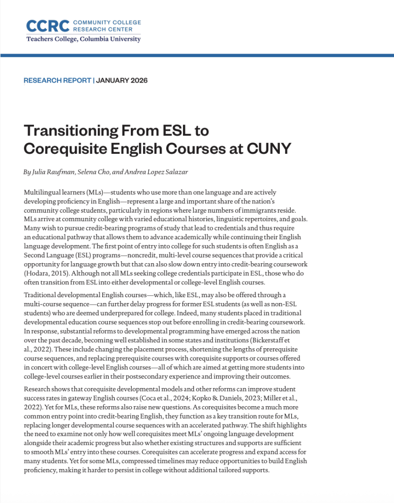 On the Evidence First podcast from MDRC—CCRC’s partner in CAPR—CCRC’s Nikki Edgecombe and MDRC’s Michael Weiss discuss their latest thinking on how developmental education reform can lead to greater equity for students.